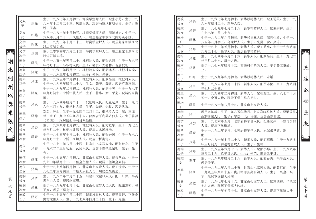 6. 以恭系巫溪支谱-泽柱公世系图、世系表